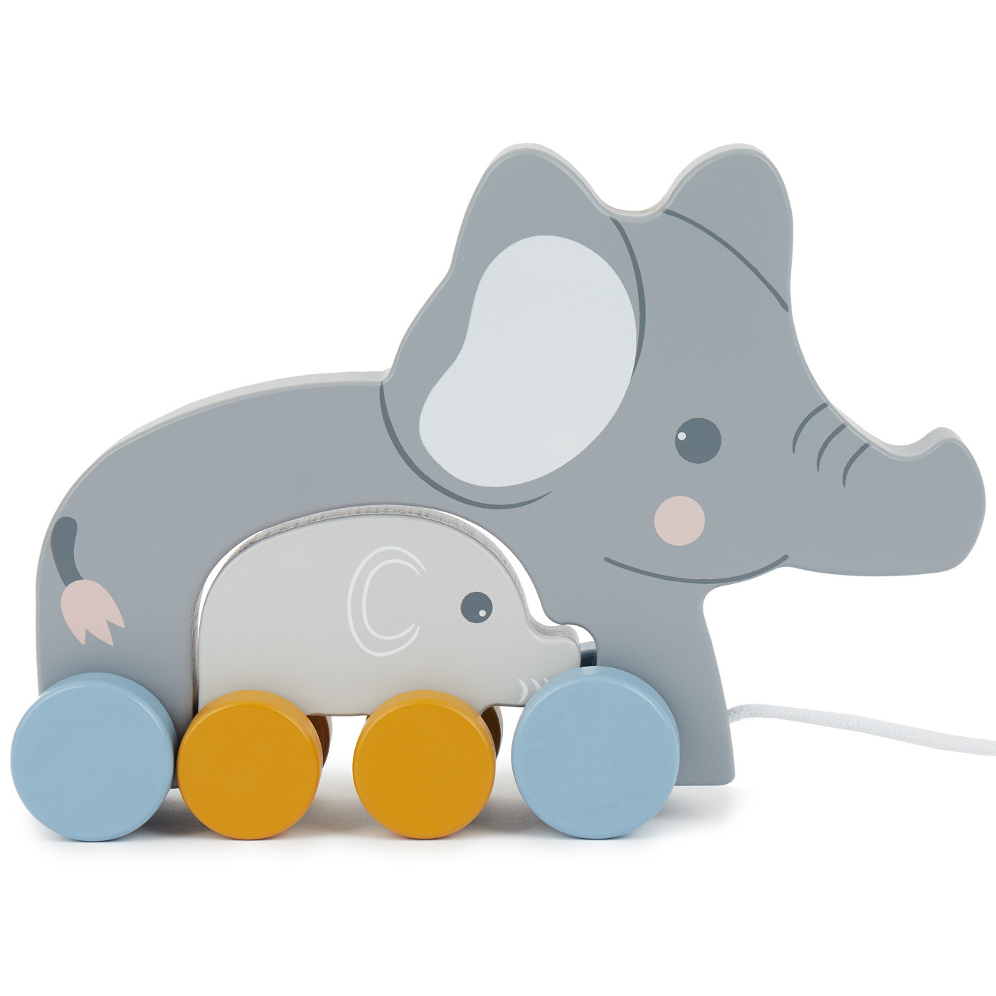 Roztomilá tahací rodinka slonů je ideální hračka pro první krůčky. Učení chůze nebylo nikdy zábavnější! Tahací sloni jsou skvělým společníkem pro malé objevitele. Pomocí měkké bavlněné šňůrky si dítě může na osmi dřevěných kolečkách šťastně táhnout malovanou sloní rodinku.