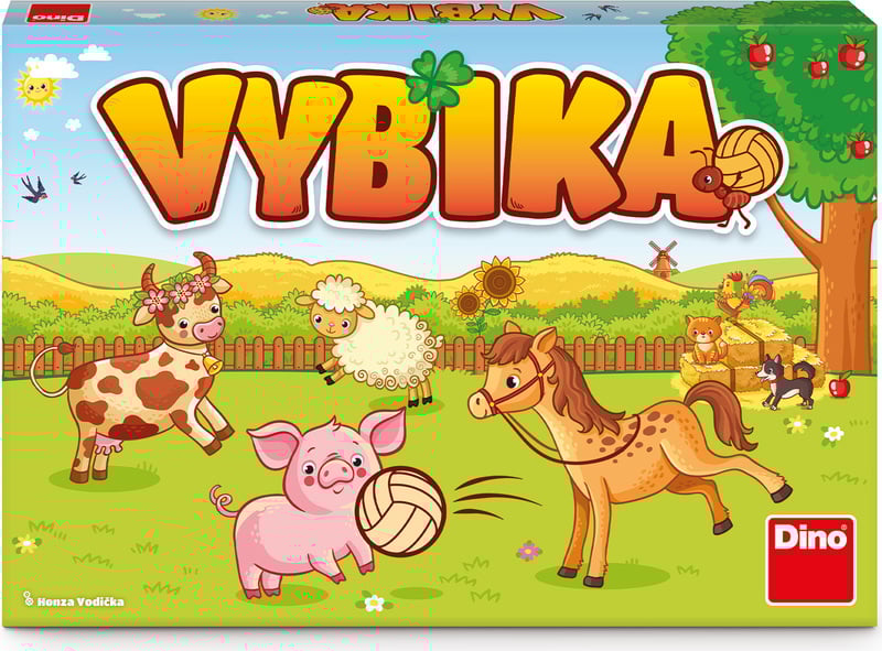 Pojďte si zahrát vybiku! Oblíbenou míčovou hru přenesenou do deskovky si děti zamilují. Je určena pro ty nejmenší už od tří let. Svižná i napínavá zároveň. Komu se podaří zůstat na dvorku jako poslední? Záleží na paměti, taktice i štěstí. Vyberte zvířátko, které je ve hře, hoďte kostkou a barva vám ukáže, jestli jste se trefili nebo míč prosvištěl těsně vedle. Hra Vybika je kompatibilní s oblíbenou dětskou hrou Schovka, ve které se vám zvířátka schovávají v lese. Obě tyto zábavné hry tak můžete propojit a hrát se všemi zvířátky najednou. Trénuje paměť, učení zvířátek i základních barev. Hra obsahuje pestrobarevný herní plán a pevné kartičky s krásnými ilustracemi zvířátek. Pro 2 - 6 hráčů od 3 let. Délka 10 minut.