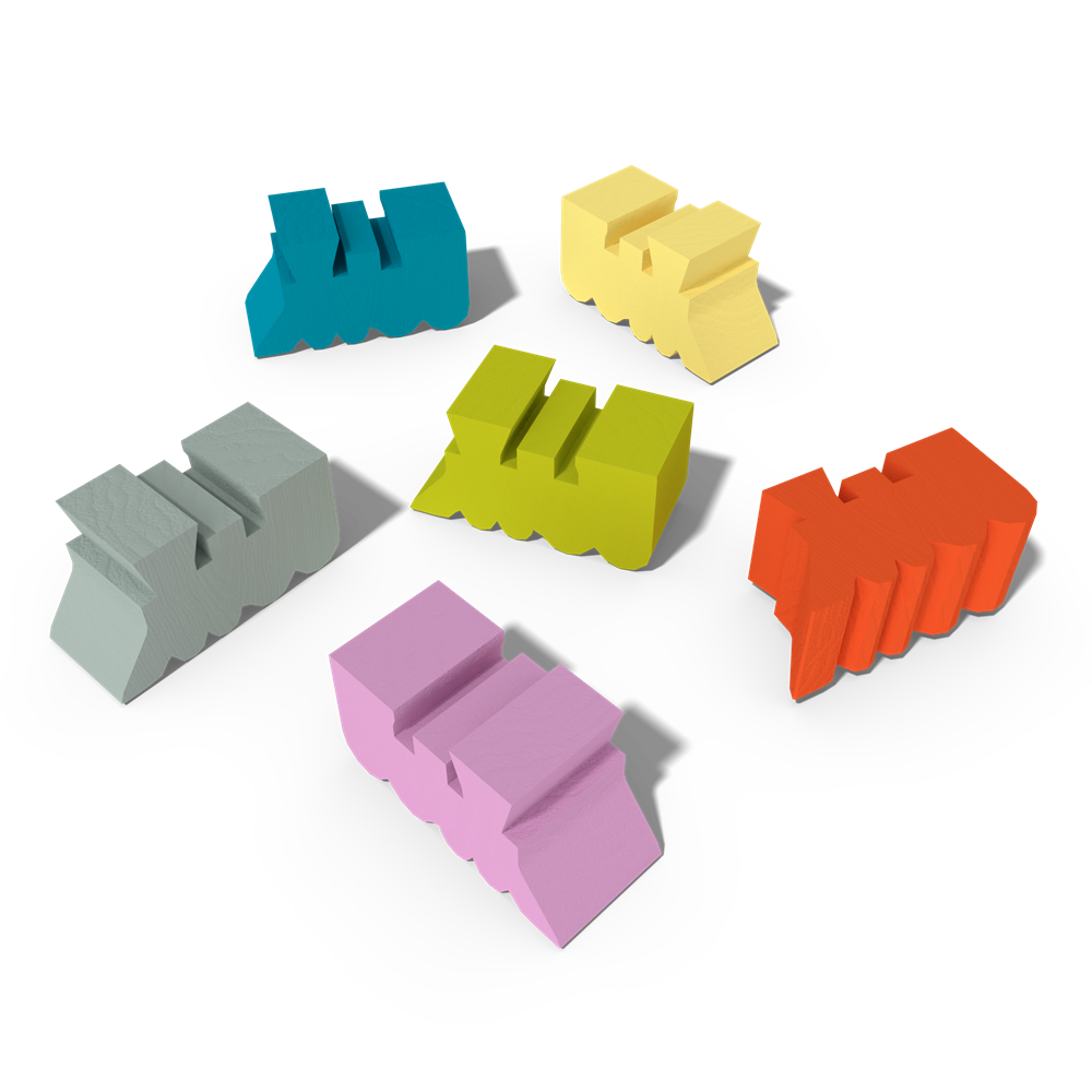 Obsahuje: 150 - Dřevěné lokomotivy (25 v každé ze 6 barev Age of Steam Deluxe)