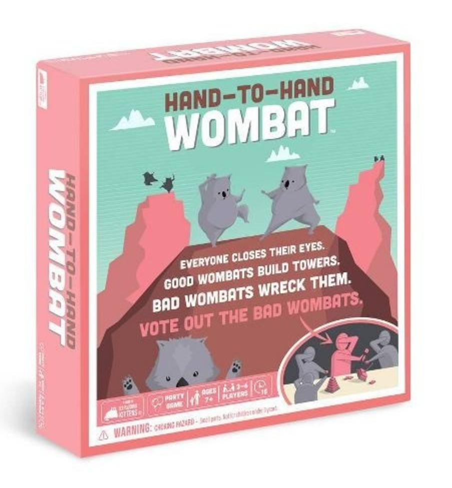 Při hře Hand-to-Hand Wombat každý z vás dostane tajnou identitu hodného nebo zlého vombata a pak všichni zavřou oči. Hodní vombati staví věže; zlí vombati se snaží tyto věže poškodit. Po uplynutí časového limitu všichni otevřou oči a diskutují, hádají se a hlasují o tom, kdo je podle nich zlý vombat.