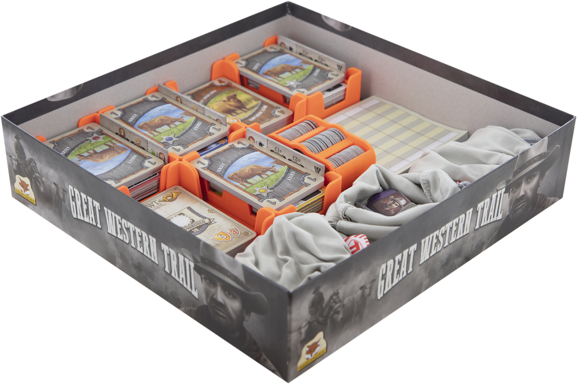Obsahuje pořadače a stojánky pro všechny komponenty hry Great Western Trail.