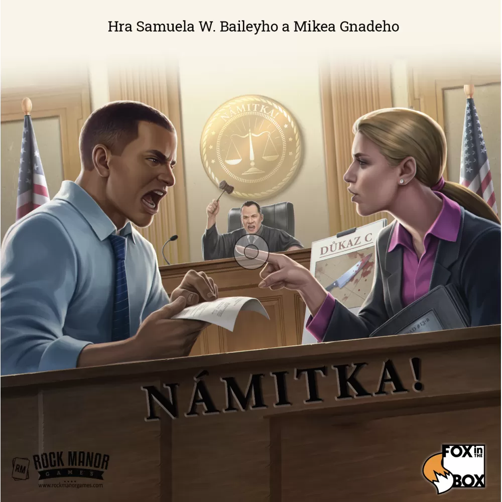 Námitka! (v originále Lawyer Up!) je asymetrickou hrou pro dva hráče, odehrávající se v dramatickém prostředí soudních síní. Jeden z hráčů představuje čestnou a spravedlivou obžalobu, druhý neochvějnou a vytrvalou obhajobu. Každá hra začíná seznamováním se spisem, během něhož si hráči vybírají životně důležité karty důkazů, jimiž mohou podpořit svou při, nebo naopak pohřbívají důkazy, které by mohly pomoci jejich protivníkovi.