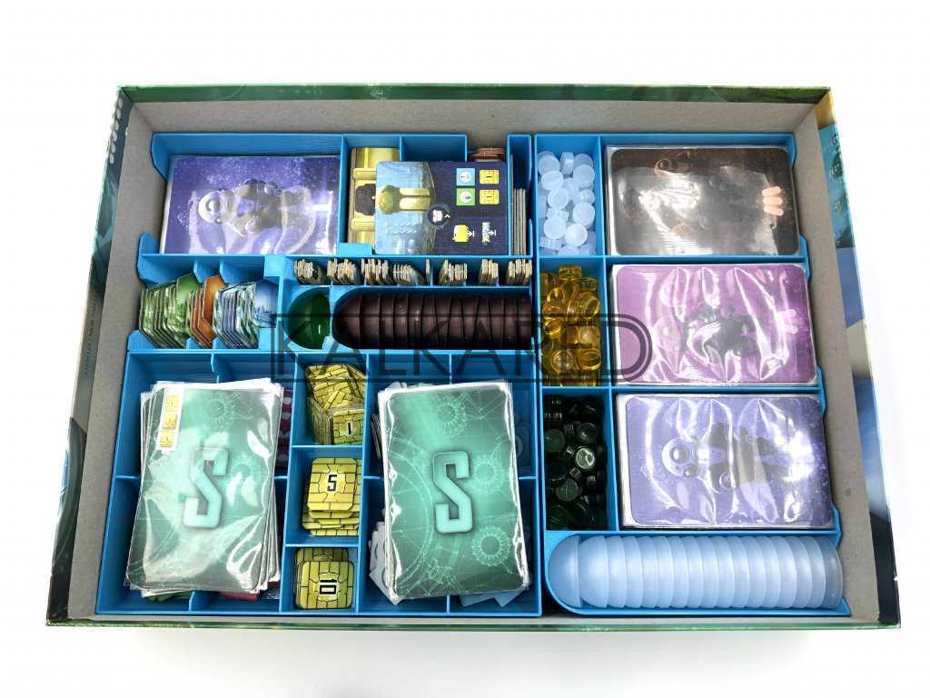 Narozdíl od standardních 80-mikronových obalů zde doporučujeme použít slabší. Chtěli jsme zachovat plně dosedající víko a proto je insert tak nízký jak to je jen možné s ohledem na extrémní množství hráčských desek. To sebou nese bohužel i snížený prostor pro klasické nafouklé prémiové obaly na karty. Doporučujeme tedy použít slabší. Nemusí jít vysloveně o papundeklový low budget, ale bohužel s 80 mikronovými by mohl být problém.