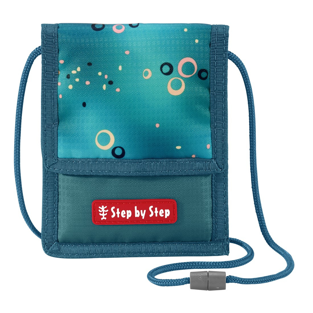 Prostorná kapsička/peněženka se šňůrkou na krk s bezpečnostním uzávěrem na mince, bankovky, klíče nebo čip na obědy je praktická pro malé školáky na 1. stupni ZŠ. Pokud dítě šňůrkou o něco zavadí, neublíží si, uzávěr se otevře. Kapsička se uzavírá klopou se suchým zipem. Uvnitř je přihrádka na mince uzavíratelná na zip, velká přihrádka na bankovky a kroužek na klíče na odnímatelné karabince. Na zadní straně je praktická průhledná přihrádka na průkaz, rychle zobrazí dokument (kartička na obědy, MHD atd.).