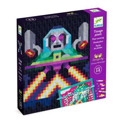 Hravá a originální kreativní aktivita pro děti ve věku 5 až 8 let. Děti si vytvoří 4 obrazy „Pixel Art“ pomocí barevných proužků papíru. Pomocí kartonového nástroje děti zasouvají proužky papíru do částečně potištěné a očíslované mřížky. Postupně vidí, jak se objevuje robot, mimozemšťan, UFO... efekt překvapení zaručen!