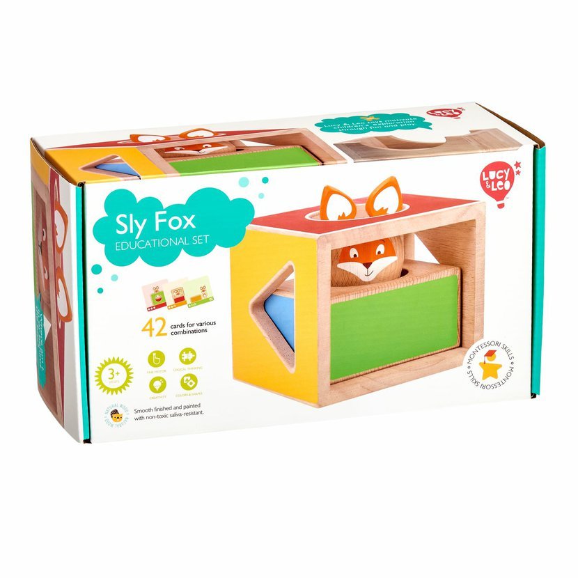 Mazaná liška je dřevěná skládačka, ve které si malá liška velmi ráda hraje na schovávanou, ale potřebuje vaši pomoc, aby se schovala mezi barevnými bloky, do kterých je třeba jí vložit. Skládá se ze 3 dřevěných kostek s otvory různých tvarů, dřevěné barevné figurky lišky a 21 oboustranných karet s úkoly různých úrovní obtížnosti. Cílem hry je uspořádat kostky a lišku dle vyobrazení na kartách. Skládačka je skvělá pro rozvoj logického myšlení, prostorového vidění, jemné motoriky a dětské představivosti. Je i dobrým pomocníkem při trénování barev, tvarů a především slovních druhů - příslovce a předložek. Tato hračka je označován jako Montessori pomůcka.