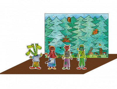 Pokud rádi hrajete divadlo a vymýšlíte různé příběhy, vyzkoušejte tuto sadu loutek a kulisu k jakékoliv pohádce. Loutkový balíček obsahuje 4 ks loutek bez vodících tyček a kulisu se dvěma motivy - hluboký les a paseka. Loutky jsou pevné a příjemné do ruky. Loutkovou pohádku si můžete zahrát jednak v našem loutkovém divadle - zasuňte kulisu do drážek na vnitřní straně víka kufříkového divadla. Pohádku si můžete skvěle zahrát i bez jakéhokoliv loutkového divadla. Zadní kulisu si děti mohou opřít třeba o opěradlo židle, položit na stůl, vyrobit vlastní divadlo z krabice či jinak zaimprovizovat, a jde se hrát. Anebo se podívejte k nám do kategorie loutková divadla, nabízíme různé varianty.Divadlo pomáhá dětem rozšiřovat komunikační a slovní zásobu i paměť opakováním příběhů. Loutky i kulisy jsou vyrobeny z velmi pevného a ekologického materiálu, který se jmenuje knihařská lepenka. Běžně se z něj vyrábí desky ke společenským hrám či dětská leporela. Materiál je natolik pevný, že tvrdost a odolnost je srovnatelná se dřevem. Co je též velmi důležité, materiál je velmi příjemný na dotek a dětem se dobře drží v ruce.Obsah balení: