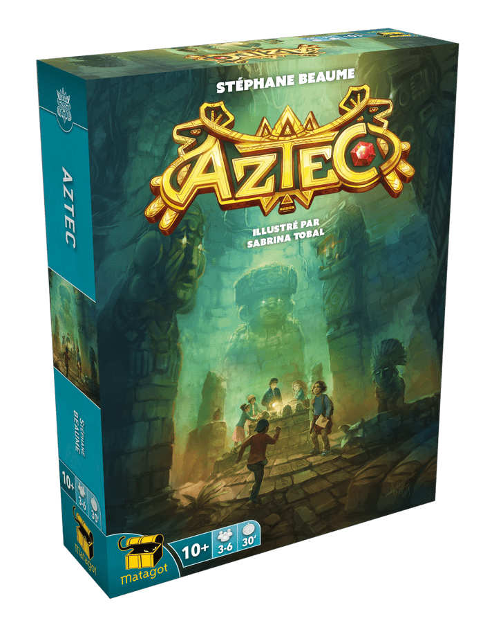 Aztec  je blafovací hra, ve které máte možnost se vloupat do prokletého chrámu jako novodobý Indiana Jones. Každé kolo vyložíte kartu, kde jsou drahokamy ve 2 různých barvách v počtu 2-4. Máte možnost buď říkat pravdu a vzít si přesně to, co je na kartě vyobrazeno a nebo lhát a tak obdržet i to, co na kartě vyobrazeno není. Poté ale mají všichni hráči možnost hlasovat, jestli to je pravda nebo ne. Přirozeně pokud budete usvědčeni ze lži, tak to bude mít pro vás negativní dopad. Během 5 kol se tak snažíte vyhnout prokletým kamenům, které za každou lež dostanete a naopak chcete nasbírat cenné poklady. Chytré blafování je u této hry klíčem k vítězství.