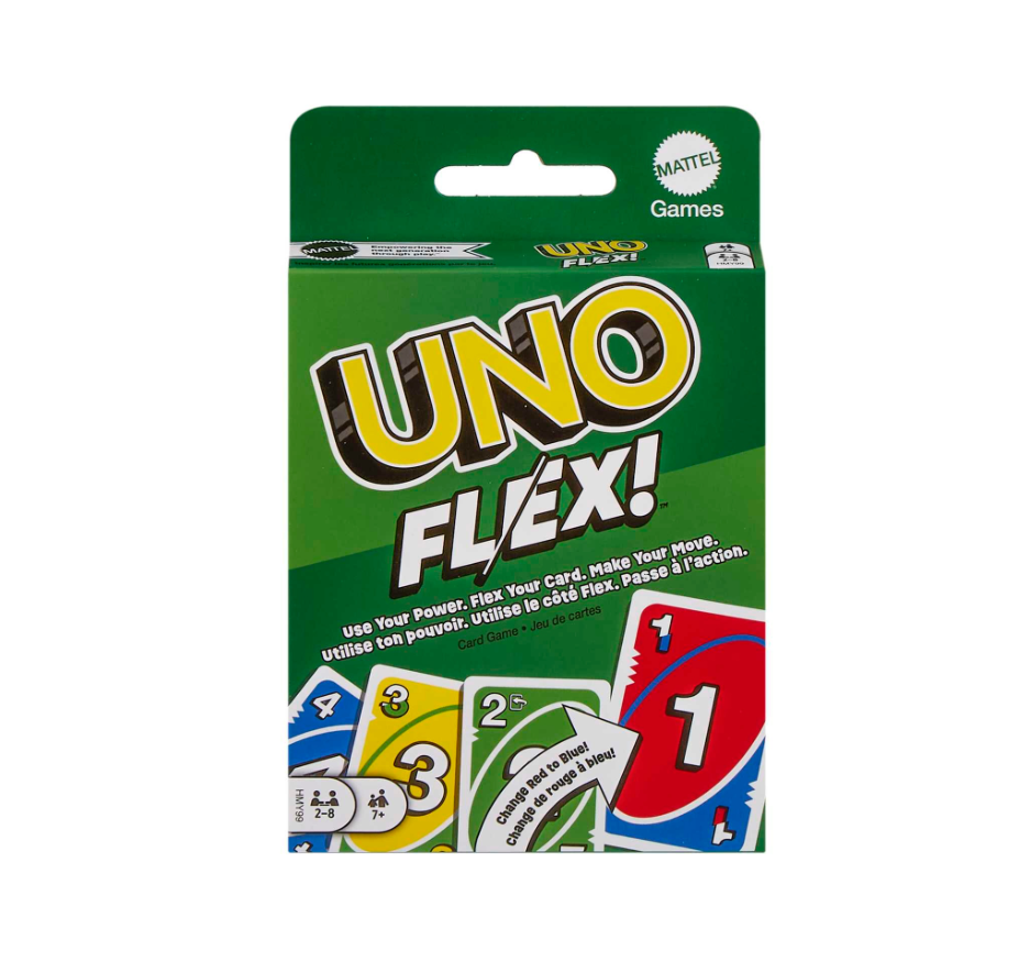 Karetní hra UNO™ Flex vychází z karetní hry UNO, kterou hráči znají a milují, ale je flexibilní. Speciální karty umožňují hráčům změnit barvu karty a vytvořit tak shodu - z červené 4 se může stát zelená 4 v jednom flexu. Karty síly a akční karty Flex přidávají do hry ještě více obratů! Hra je ideální pro rodiny, večírky a herní večery, a je skvělým dárkem pro fanoušky UNO a milovníky karetních her ve věku od 7 let. Věk 7+