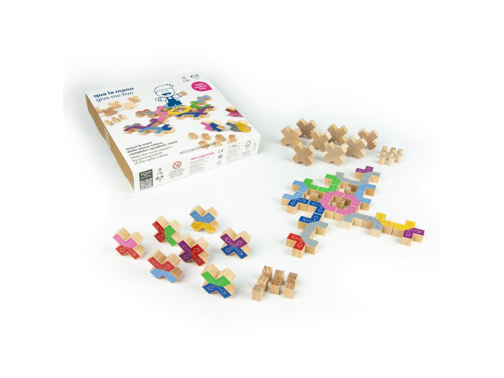 Hra pro 2 hráče od 7 let. Na každém dřevěném kříži jsou 2 ruce jedné barvy a 2 ruce jiné barvy, ale každý kříž je jedinečný, žádné dva kříže nemají stejnou barevnou kombinaci. Spojte ruce stejné barvy, doplňte políčka a vyhrajte! Hra na principu domina rozvíjí logiku a představivost