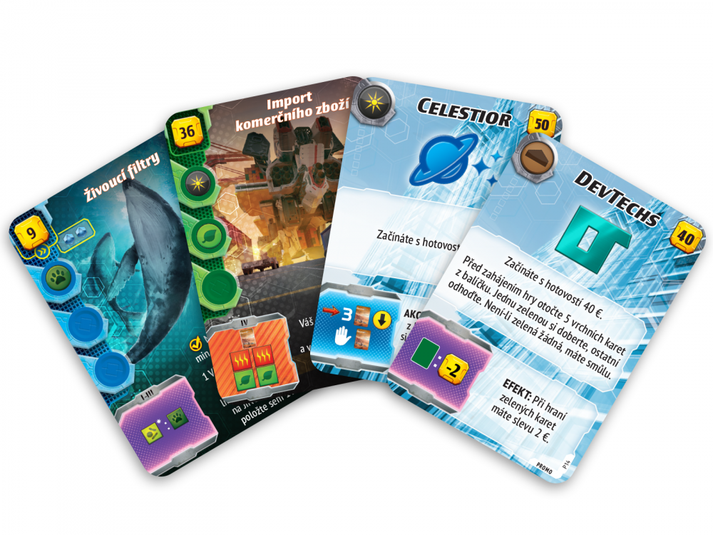 Sada 17 karet pro strategickou hru Mars: Teraformace - Expedice Ares. Karty jsou v češtině.