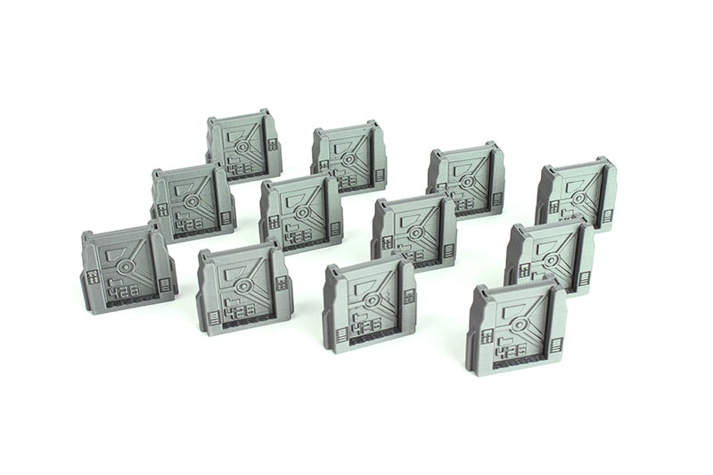 Sci-fi dveře nejen pro hru Nemesis. Skládají se ze dvou částí, které do sebe zapadají (rám a samotné dveře). Je tedy možné je mít na herním plánu otevřené či zavřené. Sada obsahuje 12 kusů.