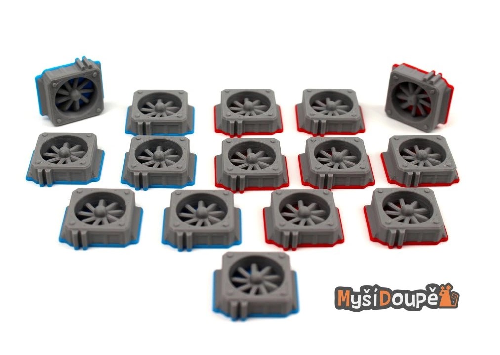 Sada obsahuje:  15x modelů ventilátorů (8x červený, 7x modrý)