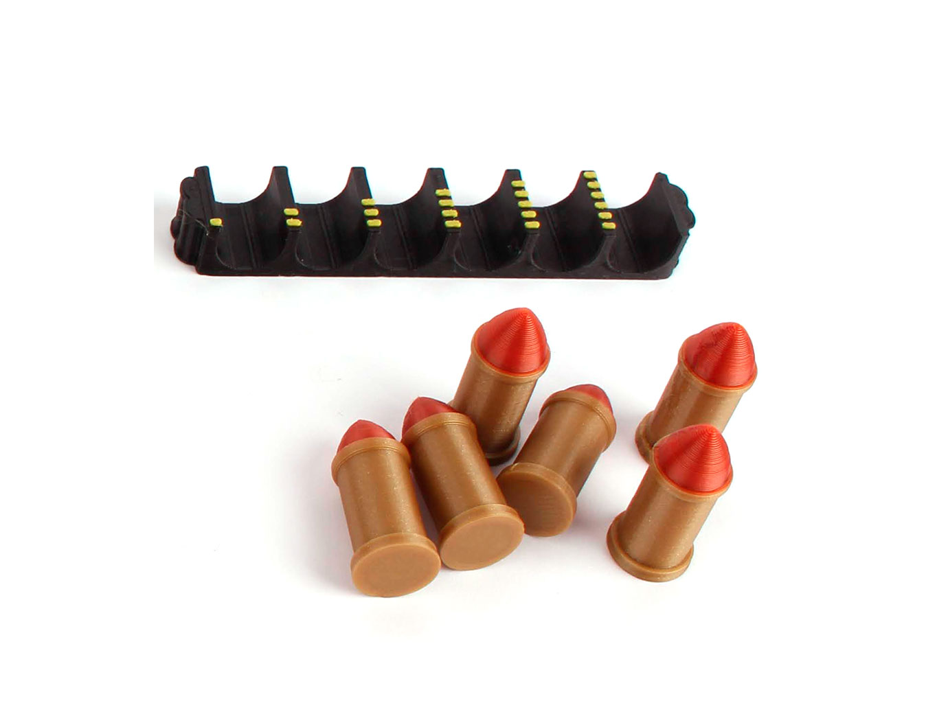 Sada obsahuje 3 druhy střeliva (náboje, palivo do plamenometu a energetické články). Zásobníky mají kapacitu na 6 výstřelů a jsou vyrobeny tak aby do nich střelivo ideálně zapadlo, což poskytuje prima pocit z nabíjení vaší vetřelcobijky 🙂