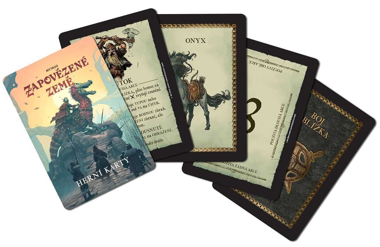 Speciální balíček karet k fantasy hře na hrdiny Zapovězené země. Obsahuje karty popisující mocné artefakty, jezdecká zvířata, bojovou iniciativu a manévry pro boj zblízka (balíček obsahuje dvě sady bojových karet, pro celou družinu si tak vystačíte s jedním balíčkem karet). Karty nejsou k hraní Zapovězených zemí nutné, ale hra s nimi bude plynulejší (účel těchto karet je podrobně popsán v páté kapitole příručky hráče).