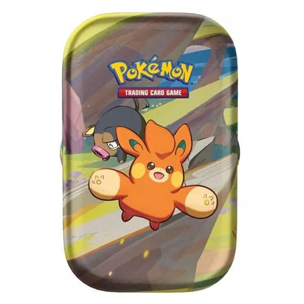 Pokémon TCG Paldea Pals je malá plechovka s ilustrací Pokémona na přední straně, 2 náhodnými doplňkovými boostery, archem samolepek a jednou speciální kartou titulního Pokémona s obrázkem na jedné straně a popisem Pokémonů na straně druhé. Roztomilá a cenově přístupná plechovka je ideálním dárkem pro sběratele Pokémonů.