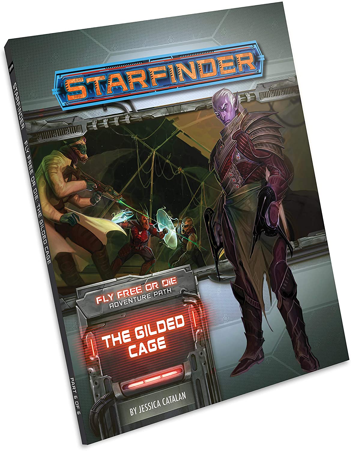 “The Gilded Cage” je dobrodružství Starfinderu pro čtyři postavy 11. úrovně. Toto dobrodružství uzavírá šestidílnou měsíční kampaň Fly Free or Die Adventure Path, v níž se hráči vžívají do role posádky obchodníka s experimentální hvězdnou lodí, která se snaží zbohatnout, uniknout meziplanetárním zabijákům a přelstít své soupeře. Tento svazek obsahuje také rady pro pokračování kampaně po 13. úrovni a veškeré podrobnosti o Pašeráckém měsíci, elitním ráji a útočišti nejvýznamnějších a nejbohatších zločinců galaxie.