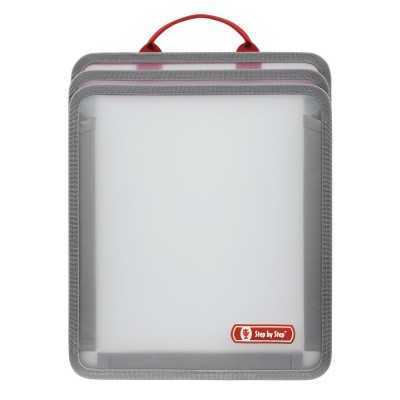 Pořadač do školních aktovek a batohů Step by Step pojme knihy, sešity, složky, jednotlivé listy atd. Díky pořadači si udržíte perfektní pořádek v v aktovce nebo v batohu. Zabraňuje ohnutí rohů u sešitů a listů. Díky háčkům pro uchycení lze pořadač uchytit v hlavní kapse. Tři jednotlivé oddíly jsou barevně označené pro rychlé třídění. Praktické je ucho do ruky nebo pro zavěšení pořadače na háček na boku lavice. Na zadní straně pořadače je přihrádka pro rovné pravítko 30 cm a trojúhelník.