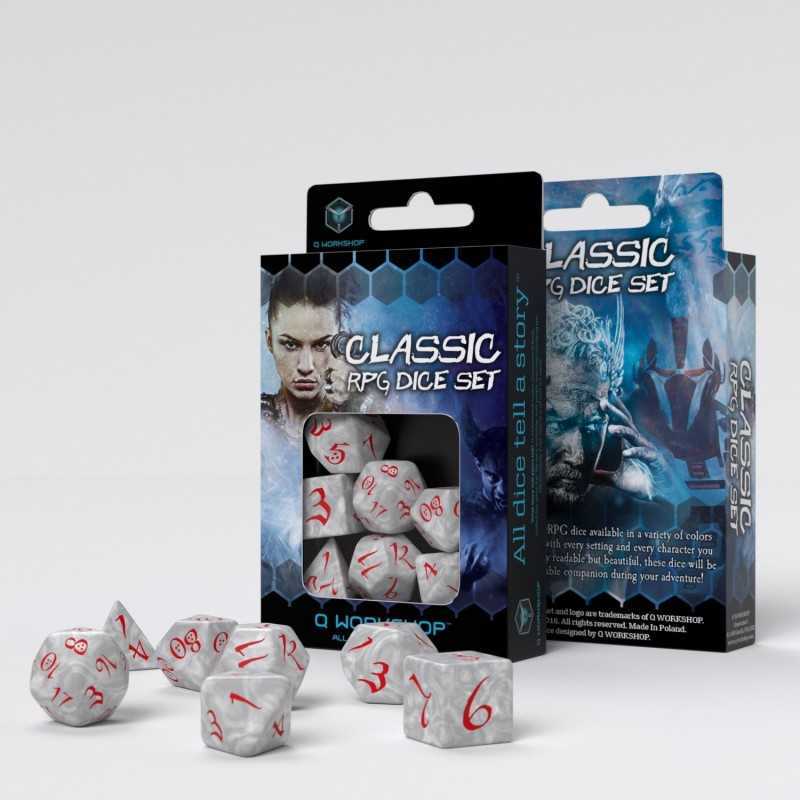 Popis produktu Q-Workshop Classic RPG Dice Set (7 dice) perleťová/červená
