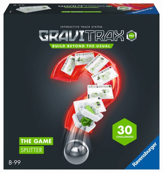 S hrou GraviTrax PRO The Game Splitter mohou děti od 8 let zažít kreativní zábavu s puzzle. Hra PRO Splitter se skládá z 30 hádanek, které je třeba vyřešit pomocí karet s úkoly. Na začátku hry je uvedena poloha startovního kamene a cíl. Jak musí být dráha postavena, aby se kulička dokutálela ze startu do cíle? Jsou určeny prvky, které lze použít. Pokud kulička dosáhne cíle, je úloha vyřešena. Tato sada je zaměřena na akční cihlu PRO Splitter. Z ní a dalších 41 stavebních kostek si děti skládají puzzle.