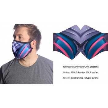 Pokrývka nosu a úst s osobitým charakterem, vyrobená ve Velké Británii.