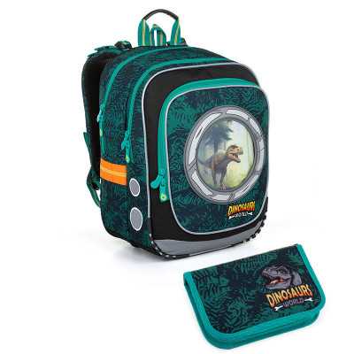 Cenově zvýhodněná školní sada pro školáka v 1.-3. třídě. Model ENDY neváží ani kilogram, proto je ideální pro kluky od první až do třetí třídy ZŠ. Díky vyměnitelným obrázkům s dinosaury můžou mít každý den jiný batoh. Batoh má dvě objemné hlavní komory. Zadní komora je širší - doporučujeme k zádům dávat nejtěžší učebnice nebo desky na sešity. Přední komora je o něco užší a je v ní umístěna ještě malá síťová kapsa na zip a jmenovka. Přední hluboká kapsa pojme penál ve stejném designu nebo krabičku na svačinku. Do bočních kapes se vejdou lahvičky o objemu 0,5 litru.