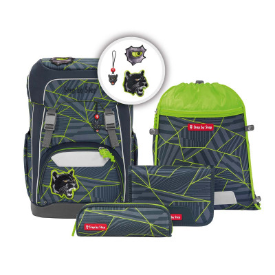 Popis produktu Školní batoh pro prvňáčky Step by Step GIANT 5dílný set, Dark Cat Chiko, certifikát AGR