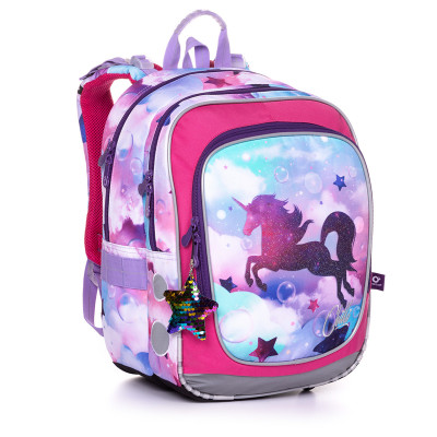Jednorožec, přívěsek, hvězdičky, bublinky, prostě snová atmosféra na lehounkém batohu pro vaše malé drobné školačky v první až třetí třídě ZŠ. Díky pevným lisovaným zádům je konstrukce batohu ENDY velmi lehká. Proto jej můžeme doporučit i pro drobné dívky pod 120 cm. Díky dvěma komorám a hluboké přední kapse ale objemem určitě vydrží nejméně do třetí třídy ZŠ.