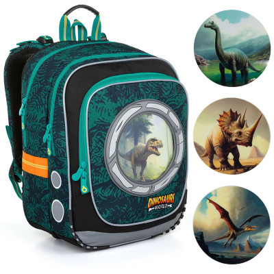 Model ENDY neváží ani kilogram, proto je ideální pro kluky od první až do třetí třídy ZŠ. Díky vyměnitelným obrázkům s dinosaury můžou mít každý den jiný batoh. Batoh má dvě objemné hlavní komory. Zadní komora je širší - doporučujeme k zádům dávat nejtěžší učebnice nebo desky na sešity. Přední komora je o něco užší a je v ní umístěna ještě malá síťová kapsa na zip a jmenovka. Přední hluboká kapsa pojme penál ve stejném designu nebo krabičku na svačinku. Do bočních kapes se vejdou lahvičky o objemu 0,5 litru.