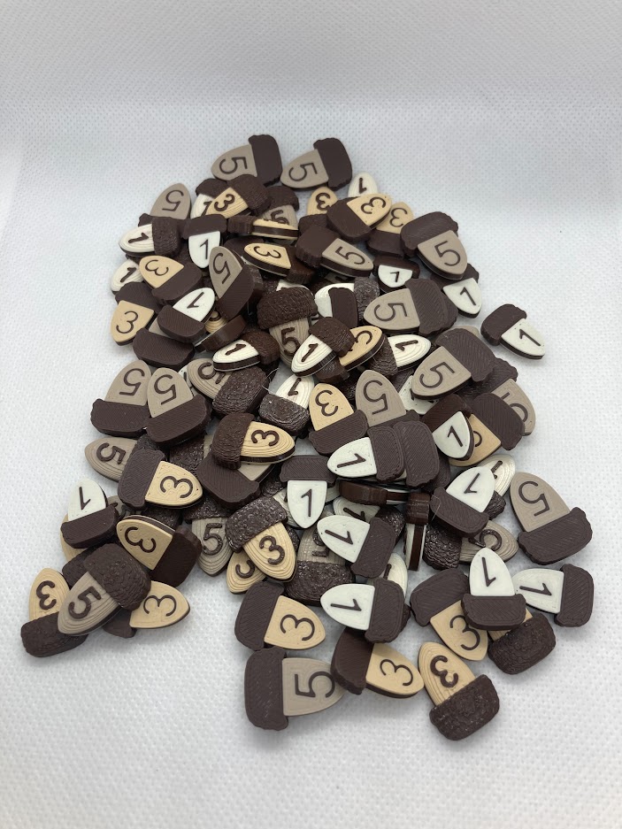 Popis produktu TLAMA games Divočina Severní Ameriky: plastové žetony žaludů