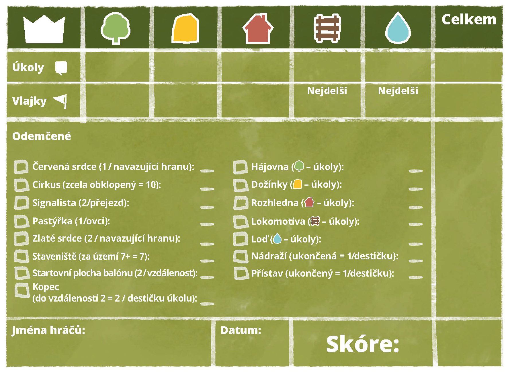 Popis produktu TLAMA games Dorfromantik: Desková hra - Stíratelný bodovací list