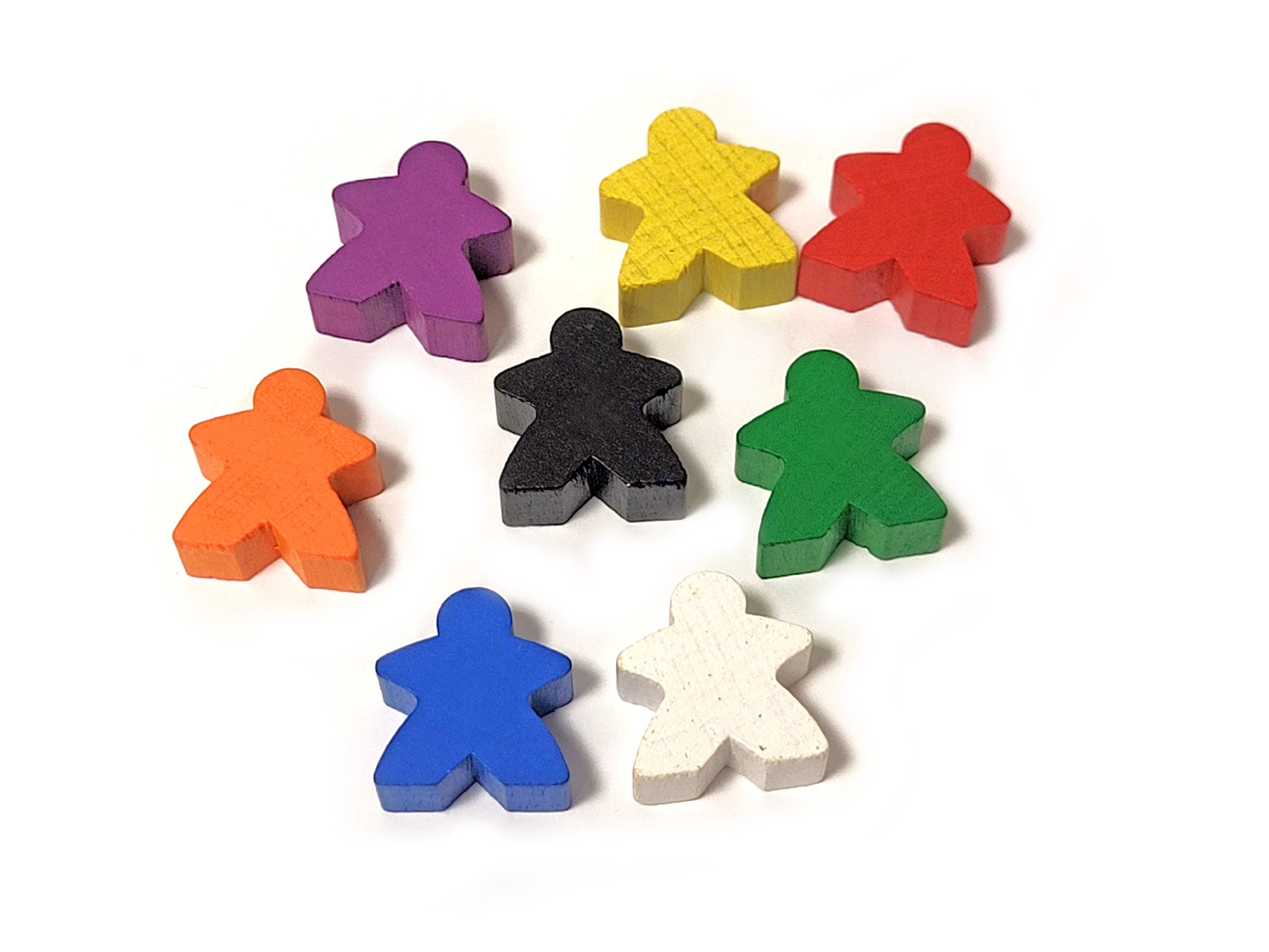 Dřevěné figurky meeplů v různých barvách. Ideální pokud chcete nahradit nebo doplnit ztracené či poškozené komponenty ve vašich deskových hrách nebo použít zcela nové.