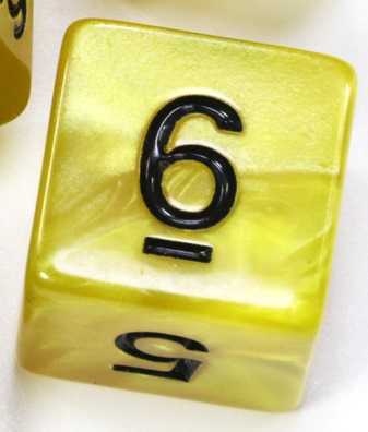 Popis produktu TLAMA games Hrací kostka šestistěnná perleťová Varianta: Žlutočerná d6