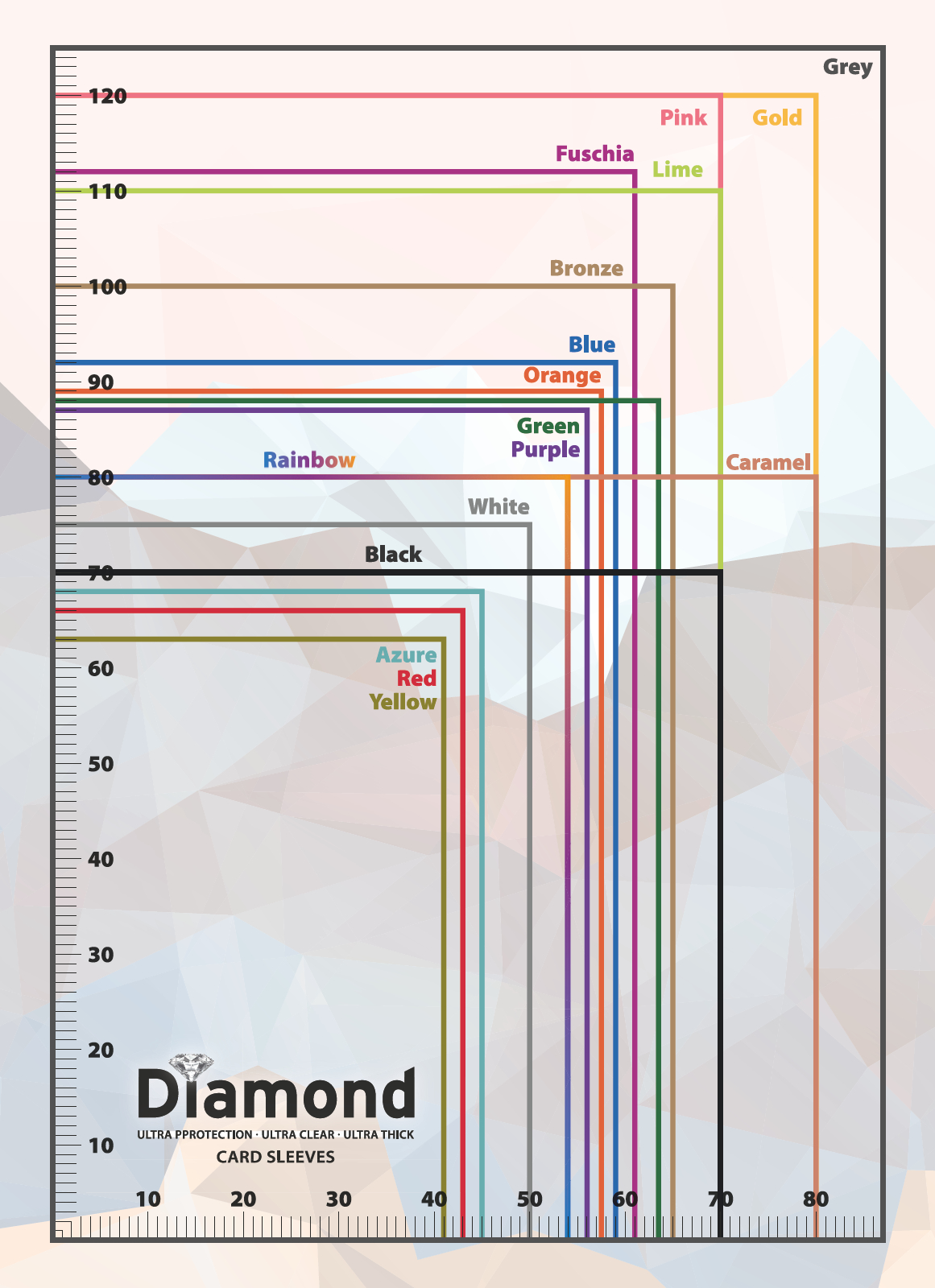 Velká karta sloužící pro porovnání vaší karty se šablonou, abyste mohli snadno určit, jaká velikost obalů Diamond je pro vás nejvhodnější. Karta je z vizitkového papíru. V každém obalu je rezerva cca 1 mm oproti obrysu. Karta, která se vejde do vnějšího okraje obrysu se vám tedy do obalu zaručeně vejde.