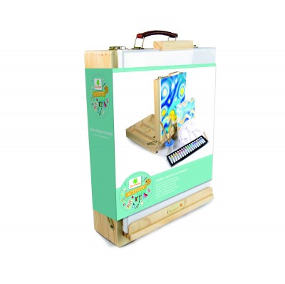 Vítejte ve světě umění s touto uměleckou sadou. Vše je ukryté v dřevěném kufříku, který se po rozložení může přeměnit na malířský stojan. Uvnitř najdou malí umělci potřebné nástoje pro malbu. Pestrou paletu barev, štětce, plátna a mnoho dalšího. Uzavřený kufr je kompaktní a snadno se přenáší. Tato umělecká sada je ideální pro děti od 6 let a poskytuje jim možnost vyzkoušet si malování a tvoření v profesionálním stylu.