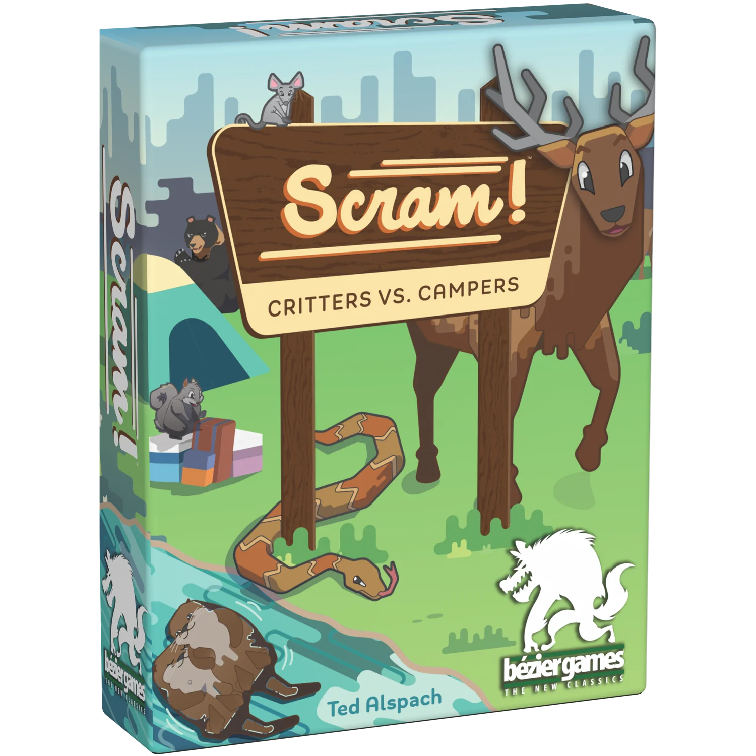 Po túře po místní stezce jste se s partnerem vrátili do kempu, který zcela vyplenili otravní živočichové. Spojte síly a vyčistěte tábořiště od potvůrek dříve než vaši sousedé. Scram! je zábavná a rychlá týmová karetní hra, která se hraje 1 vs 2, 2 vs 2 a 3 vs 3!