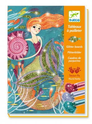 Výtvarná hra pro dívky od 7 do 13 let. V sadě jsou 4 předkreslené obrázky mořských pannen, které je třeba dotvořit přiloženými třpytkami. Třpytky se dosypávají na lepivé plochy, není potřeba lepidlo.